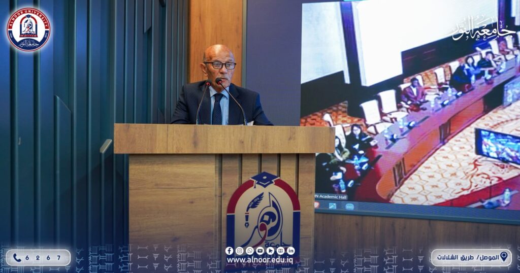Under the patronage of His Excellency Dr. Naim Al-Aboudi, Minister of Higher Education and Scientific Research, and in the presence of Prof. Dr. Yaseen Taha Al-Hajjar, The Second International Scientific Conference on Media was organized by Al-Noor University and the University of Mosul on the morning of Wednesday, September 10, 2025, under the title: “Digital Media Facing Change… Challenges of the Present and Prospects for the Future.” The opening session began with speeches delivered by Prof. Dr. Yaseen Taha Al-Hajjar, President of Al-Noor University; Prof. Barabash Viktor, Dean of the Faculty of Philology at Rodn University in Russia; Prof. Dr. Hatem Fahd Al-Taie, Dean of the College of Arts at the University of Mosul; and the Dean of… College of Arts at Alnoor University, Prof. Dr. Wael Al-Nahhas . In addition, two videos were presented, one from Alnoor University and the other from Rodn University in Russia.