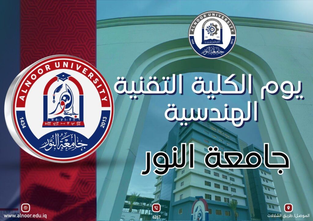 تحتفل أسرة جامعة النور صباح يوم الاثنين الموافق 2025/11/3 بالذكرى السنوية الأولى لتأسيس الكلية التقنية الهندسية، وذلك في الساعة الحادية